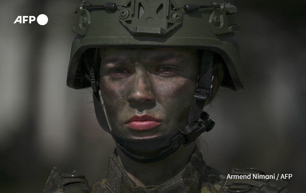 A member of the Kosovo Security Force (KSF) stands guard during a ceremony marking the 26th anniversary of the killing of Kosovo Liberation Army (KLA) founding member and commander Adem Jashari in Pristina on March 5, 2024. Jashari, seen as the 'father of the KLA,' was among 45 members of his family killed by Serb security forces in the village of Prekaz, located some 50 km west of the Kosovo capital, Pristina, sparking a full-blown rebel insurgency.