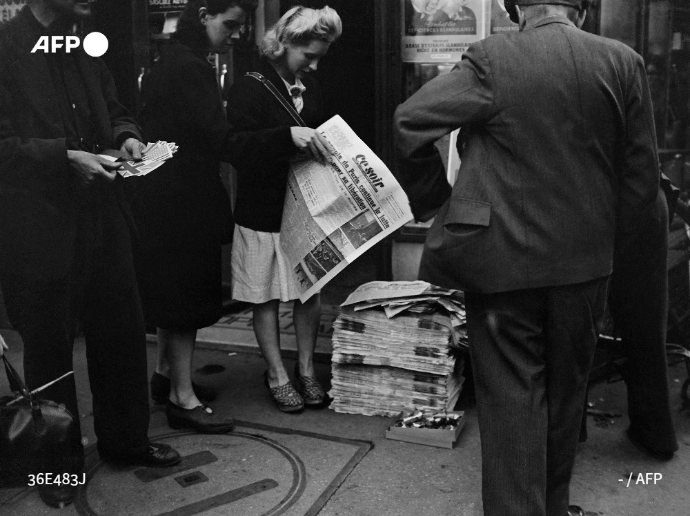 Août 1944 : des Parisiens se précipitent sur les journaux du jour qui viennent d'être livrés. © AFP