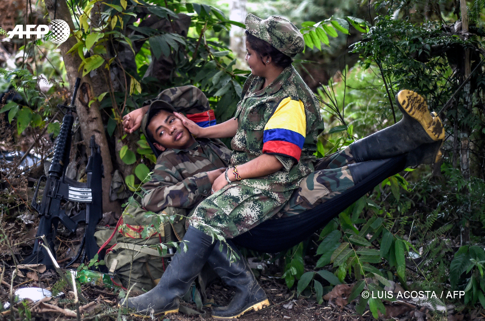 18 février 2016 – Colombie – Des membres des FARC se reposent dans un camp situé dans les montagnes colombiennes. © AFP PHOTO / LUIS ACOSTA