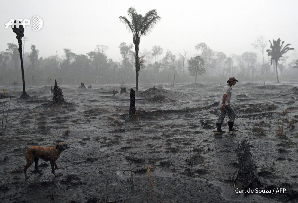 Carl de Souza, photographe basé à Rio de Janeiro s'est distingué en remportant la troisième place dans la catégorie « Science et histoire naturelle » grâce à sa photo intitulée "L'Amazonie brûle" où un fermier brésilien et un chien se promènent dans une zone dévastée de la forêt amazonienne, près de Porto Velho, dans l'État de Rondonia, au Brésil.