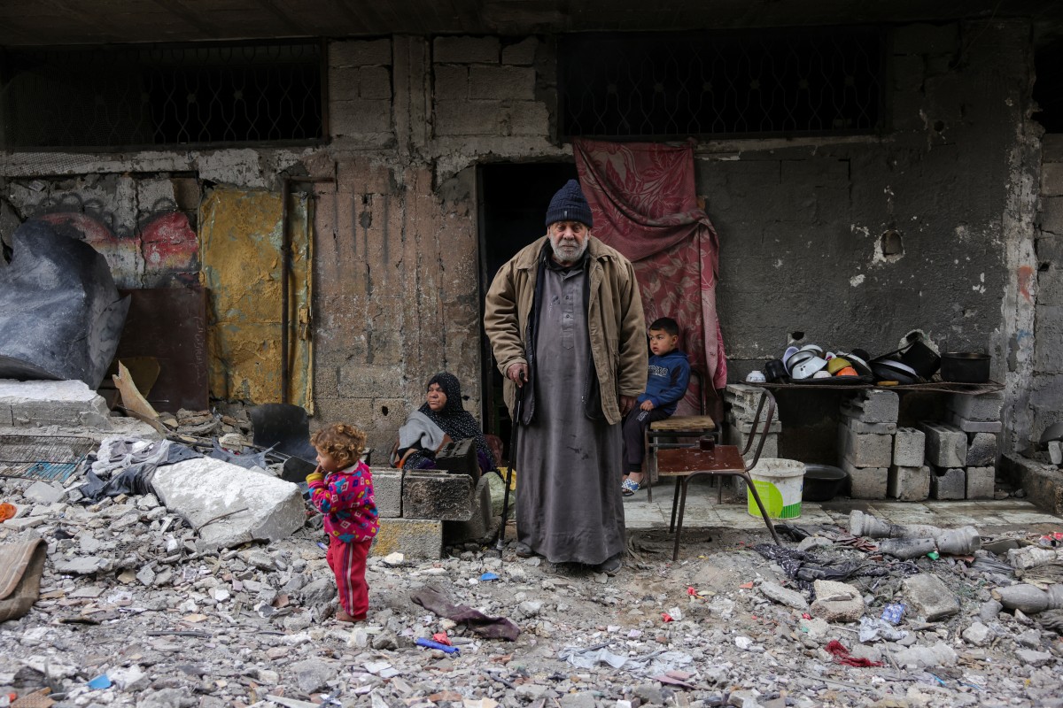 Ali Al-Qanoua, 73 ans, pose devant sa maison détruite à Jabalia, dans le nord de la bande de Gaza, le 9 février 2025. © Bashar Taleb / AFP